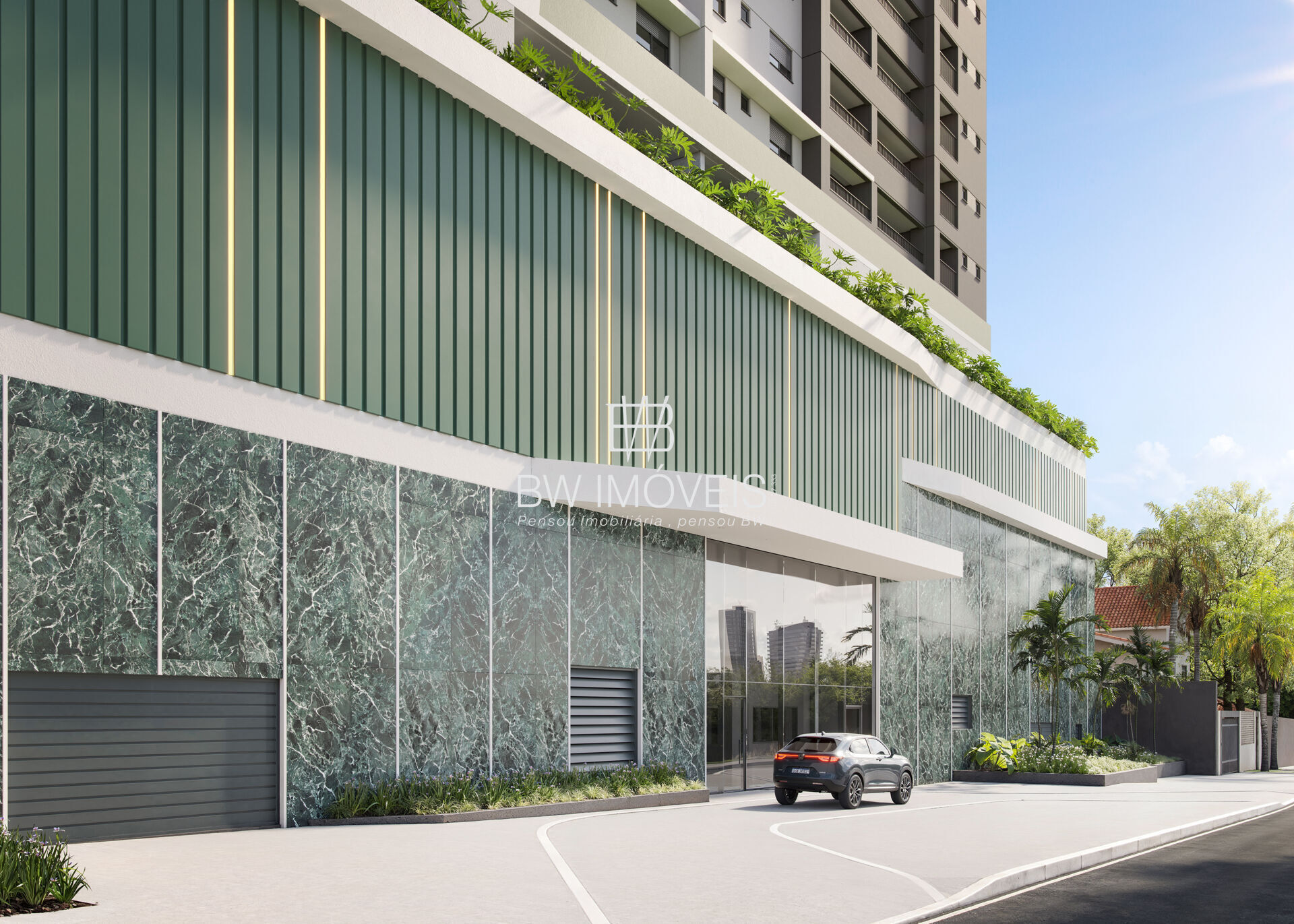 5 elevadores, porte-cochère, pulmão de segurança, bicicletário e espaço delivery.